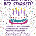A teď z jiného soudku. Konfety, párečky v županu, svíčičky, všechno načinčat — anebo vám půjčíme jen prostory, nebo nebo něco mezi tím. Namodelujte si svou párty, uděláme vše pro vaši spokojenost.