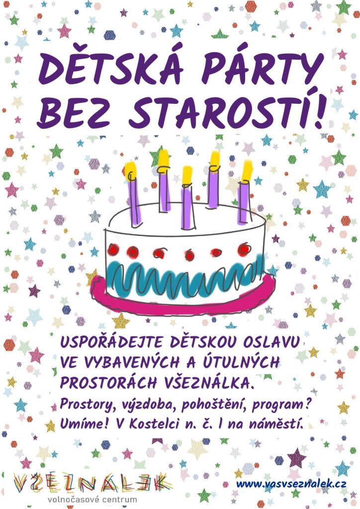 Konfety, párečky v županu, svíčičky, všechno načinčat — anebo Vám půjčíme jen prostory, nebo nebo něco mezi tím. Uděláme vše pro spokojenost Vaši i oslavenců. Čtyři různé balíčky “na klíč” – zvolte si ten svůj. Čtěte víc a rezervujte si termín zde.